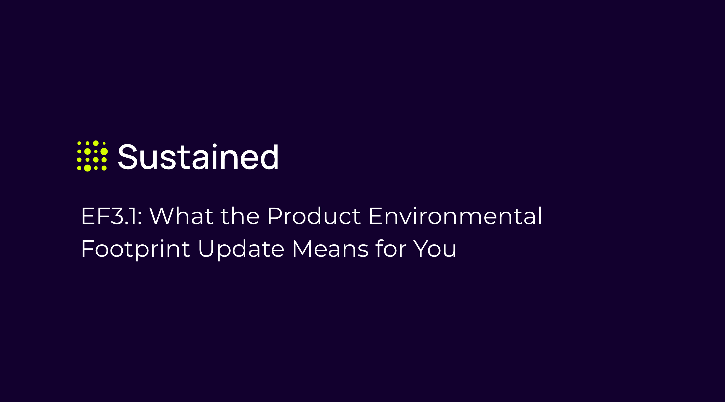 Regulations and scientific standards will continue to evolve. With Sustained, your LCAs evolve with them, automatically, consistently, and without manual overhead. If you want to discuss what EF3.1 means for your specific product portfolio, get in touch.