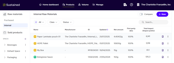 You may have some 'Internal Products' (e.g., common raw materials, packagings, or ingredients) that are re-used across many products. These global products live in a separate list, in the Raw Materials section of your interface, not within the organisational hierarchy created for 'Sold Products'. This is due to their global nature.